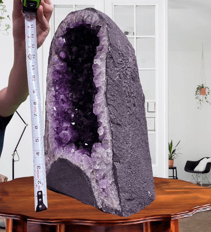 This one-of-a-kind amethyst is 100% natural and originated from Brazil. It is a large amethyst geode that is 16.00" inches tall – the perfect tabletop accessory that can be conveniently moved around so you can enjoy its healing properties in many locations.